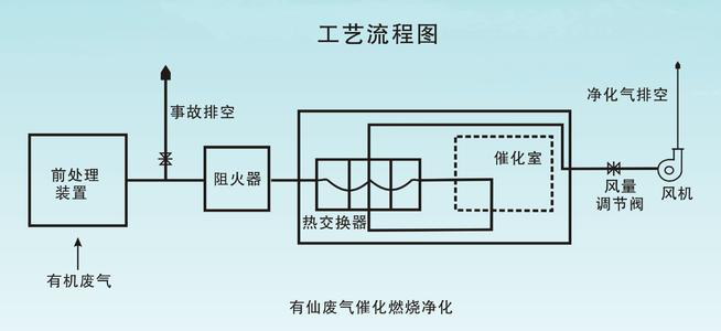 本裝置是利用催化劑做中間體,使有機(jī)氣體在較低的溫度下燃燒、生成無害的二氧化碳和水蒸氣排放。反應(yīng)方程式: